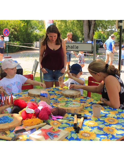 Zum zweiten Mal bieten Oberhachinger Vereine unterschiedlichste Spielstationen an- wie z.B. Kistenklettern, eine Hüpfburg, eine Feuerwehr-Kinderspritze, Hufeisenwerfen, Gesellschaftsspiele für Groß und Klein, einen Rollstuhlparcours, Bastelecken uvm.
